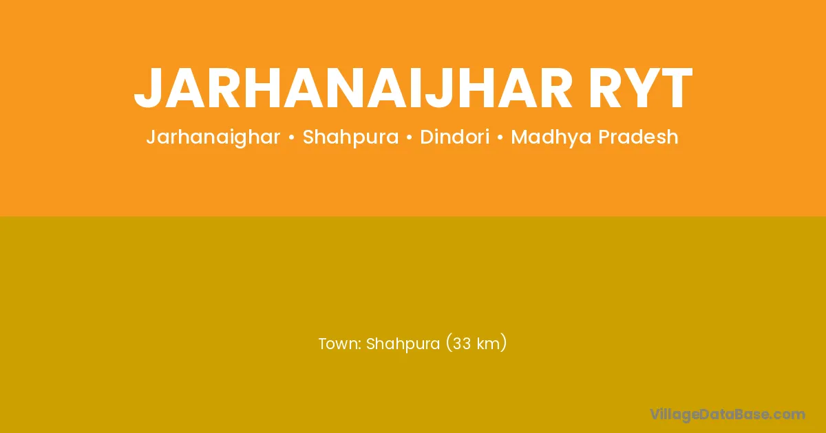 Shahpura (33 km) is the nearest town to Jarhanaijhar Ryt village for major economic activities and is located approximately 33 km away.