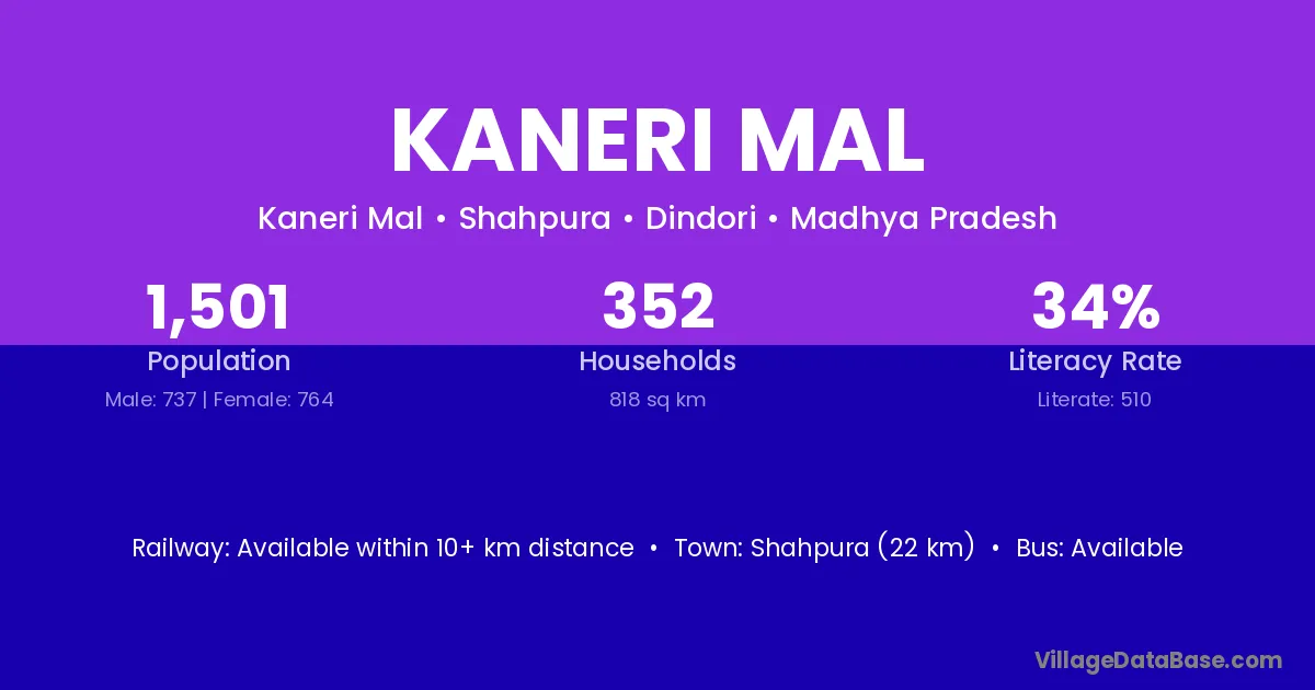 Kaneri Mal village has a total population of 1,501 people, of which 737 are males and 764 are females.