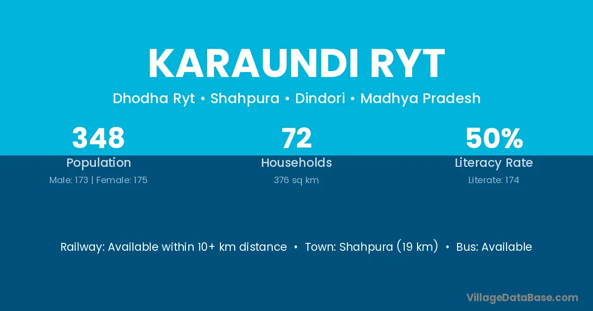 Shahpura (19 km) is the nearest town to Karaundi Ryt village for major economic activities and is located approximately 19 km away.