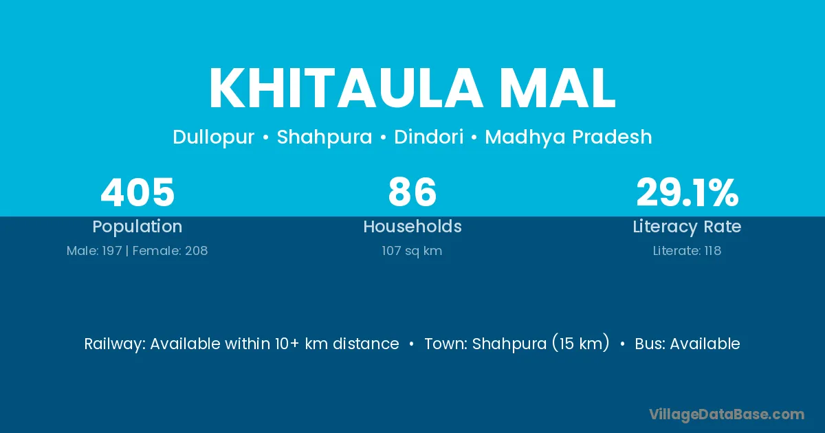 Shahpura (15 km) is the nearest town to Khitaula Mal village for major economic activities and is located approximately 15 km away.