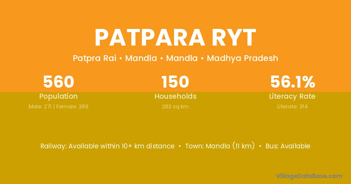 The literacy rate of Patpara Ryt village is 48.98%. Male literacy stands at 62.43% and female literacy at 35.29%.