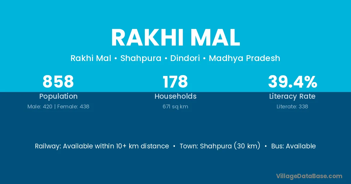 Rakhi Mal village has a total population of 858 people, of which 420 are males and 438 are females.