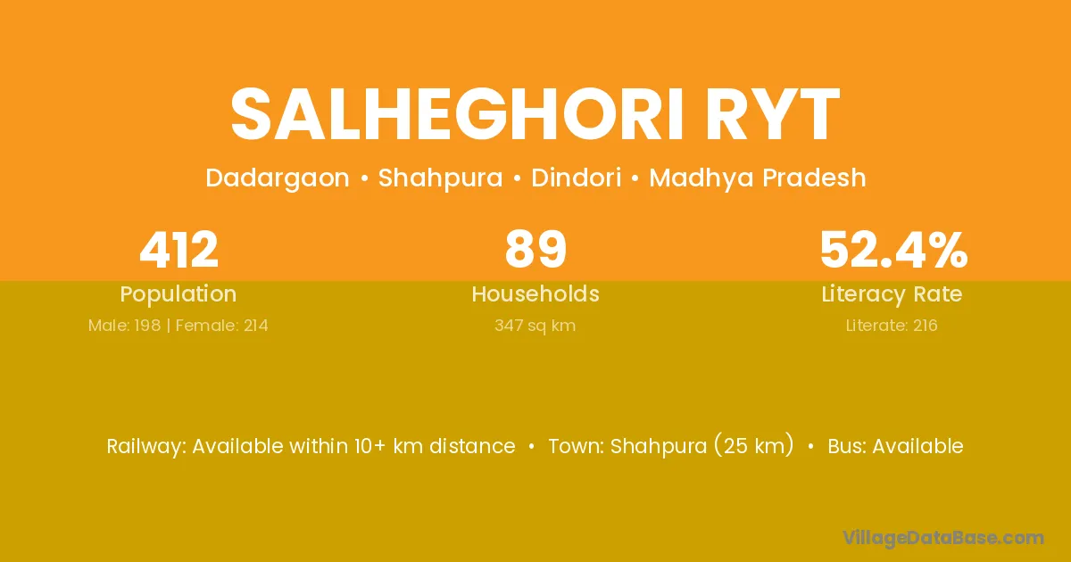 Salheghori Ryt village has a total population of 412 people, of which 198 are males and 214 are females.
