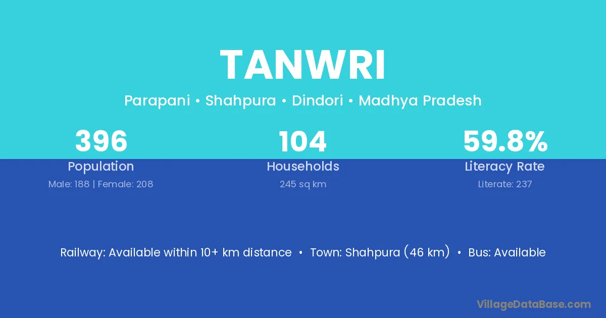 Tanwri village has a total population of 396 people, of which 188 are males and 208 are females.