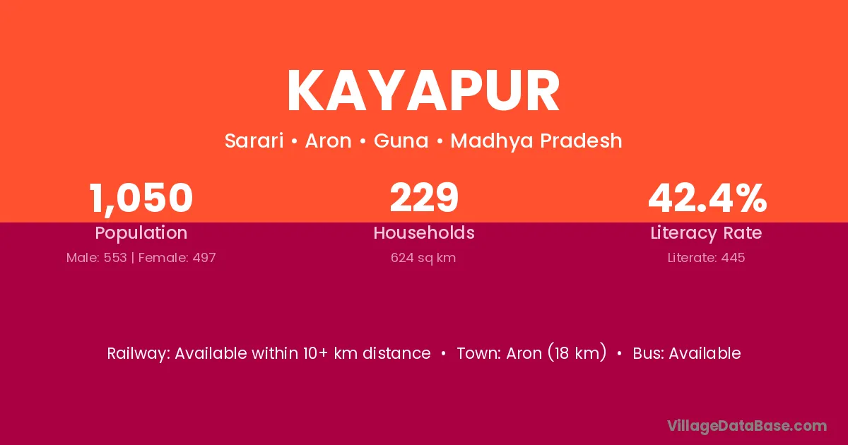 Kayapur village has a total population of 1,050 people, of which 553 are males and 497 are females.