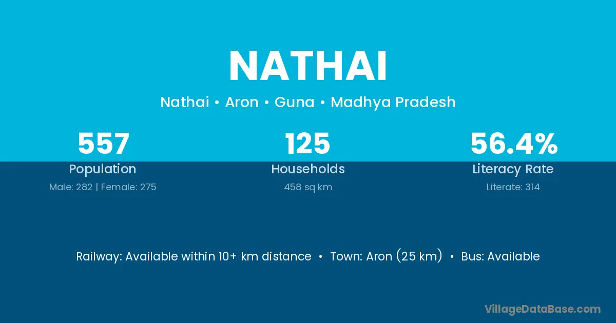 Aron (25 km) is the nearest town to Nathai village for major economic activities and is located approximately 25 km away.