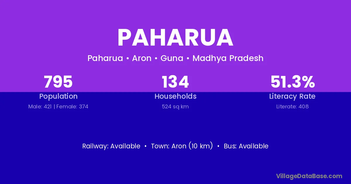 Paharua village has a total population of 795 people, of which 421 are males and 374 are females.