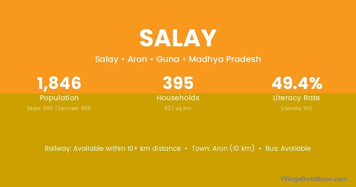 Salay village has a total population of 1,846 people, of which 990 are males and 856 are females.