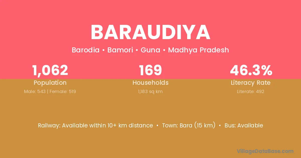 Bara (15 km) is the nearest town to Baraudiya village for major economic activities and is located approximately 15 km away.