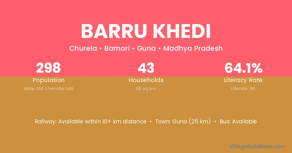 Guna (25 km) is the nearest town to Barru Khedi village for major economic activities and is located approximately 25 km away.
