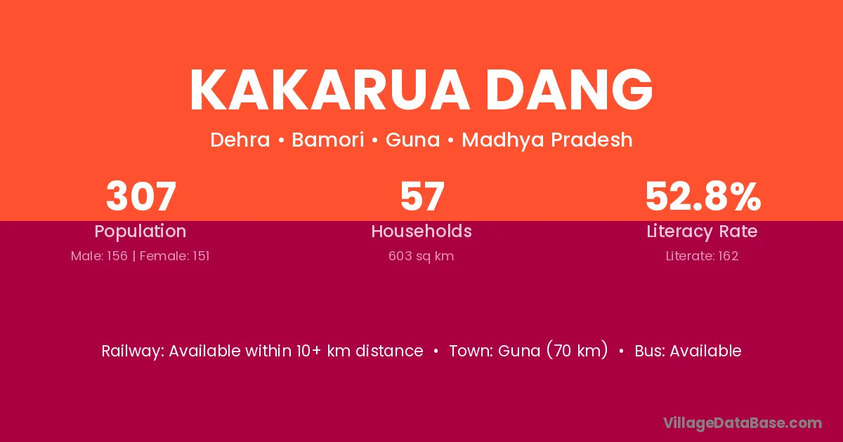 Kakarua Dang village has a total population of 307 people, of which 156 are males and 151 are females.