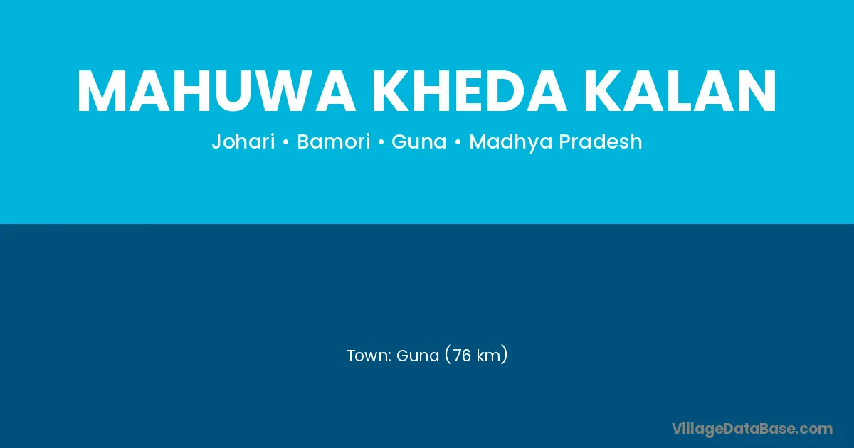 Guna (76 km) is the nearest town to Mahuwa Kheda Kalan village for major economic activities and is located approximately 76 km away.
