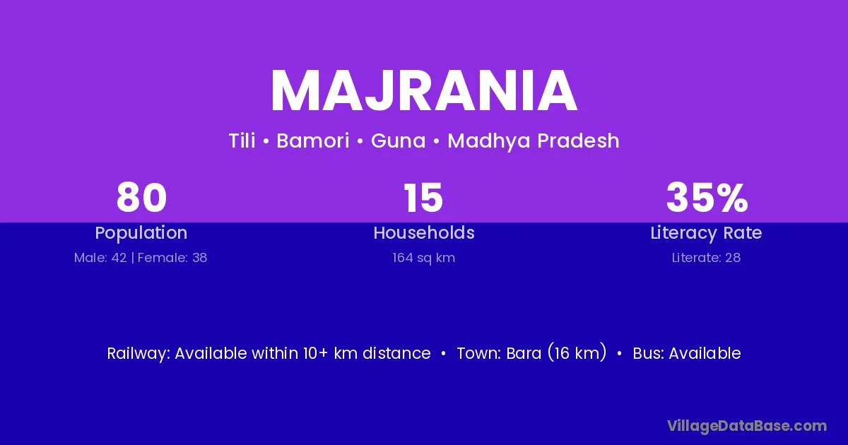 Bara (16 km) is the nearest town to Majrania village for major economic activities and is located approximately 16 km away.