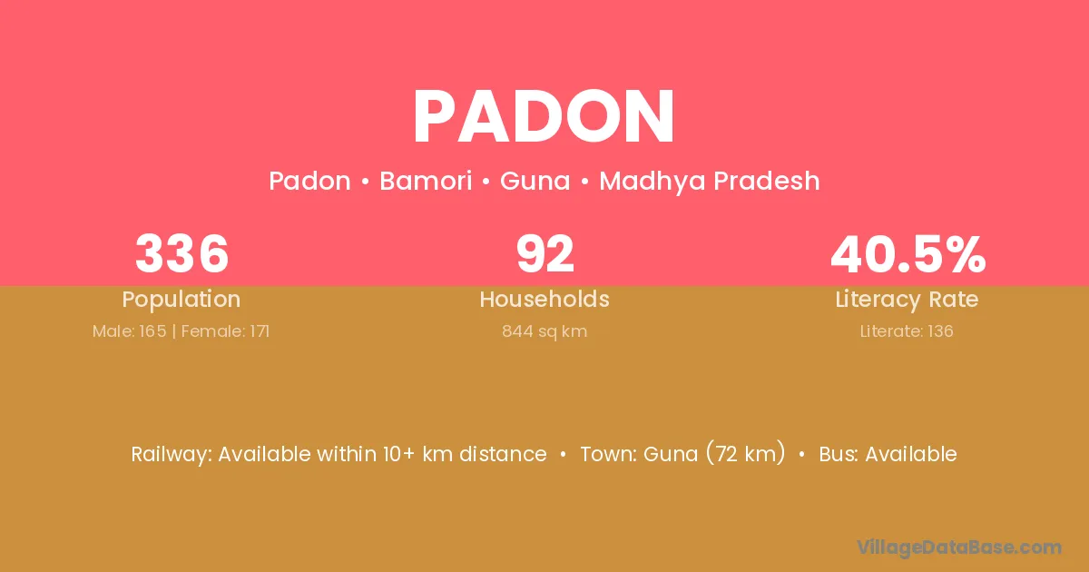 Guna (72 km) is the nearest town to Padon village for major economic activities and is located approximately 72 km away.