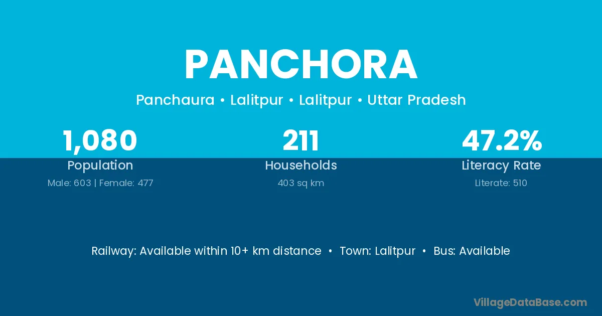 Guna (48 km) is the nearest town to Panchora village for major economic activities and is located approximately 48 km away.