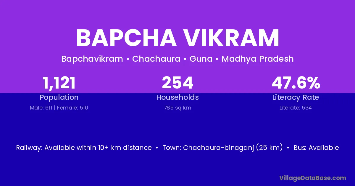 Bapcha Vikram village has a total population of 1,121 people, of which 611 are males and 510 are females.