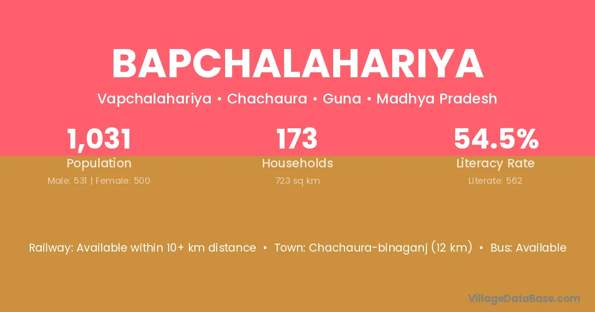Bapchalahariya village has a total population of 1,031 people, of which 531 are males and 500 are females.