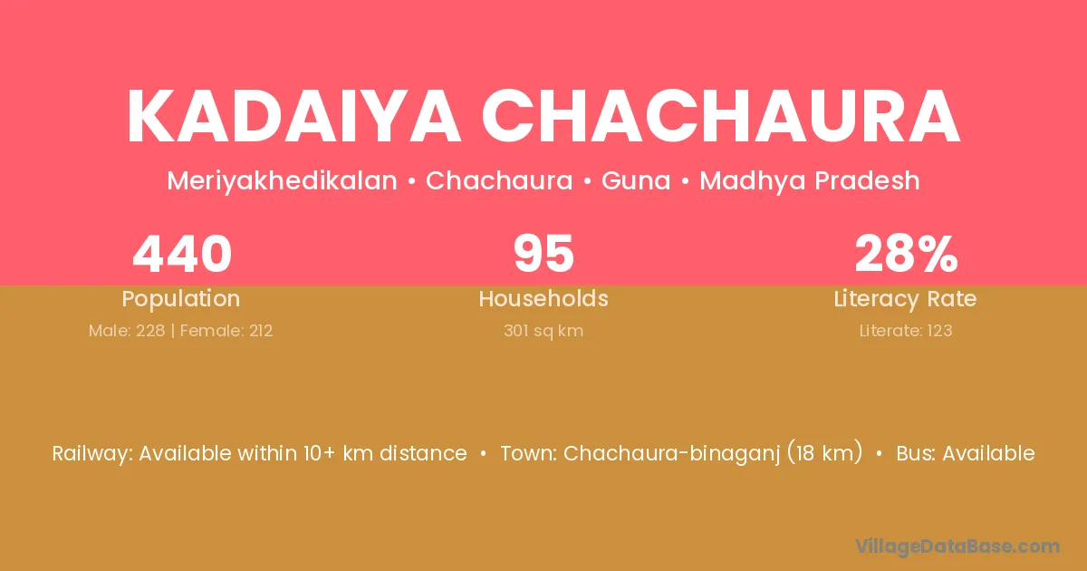 Kadaiya Chachaura village has a total population of 440 people, of which 228 are males and 212 are females.