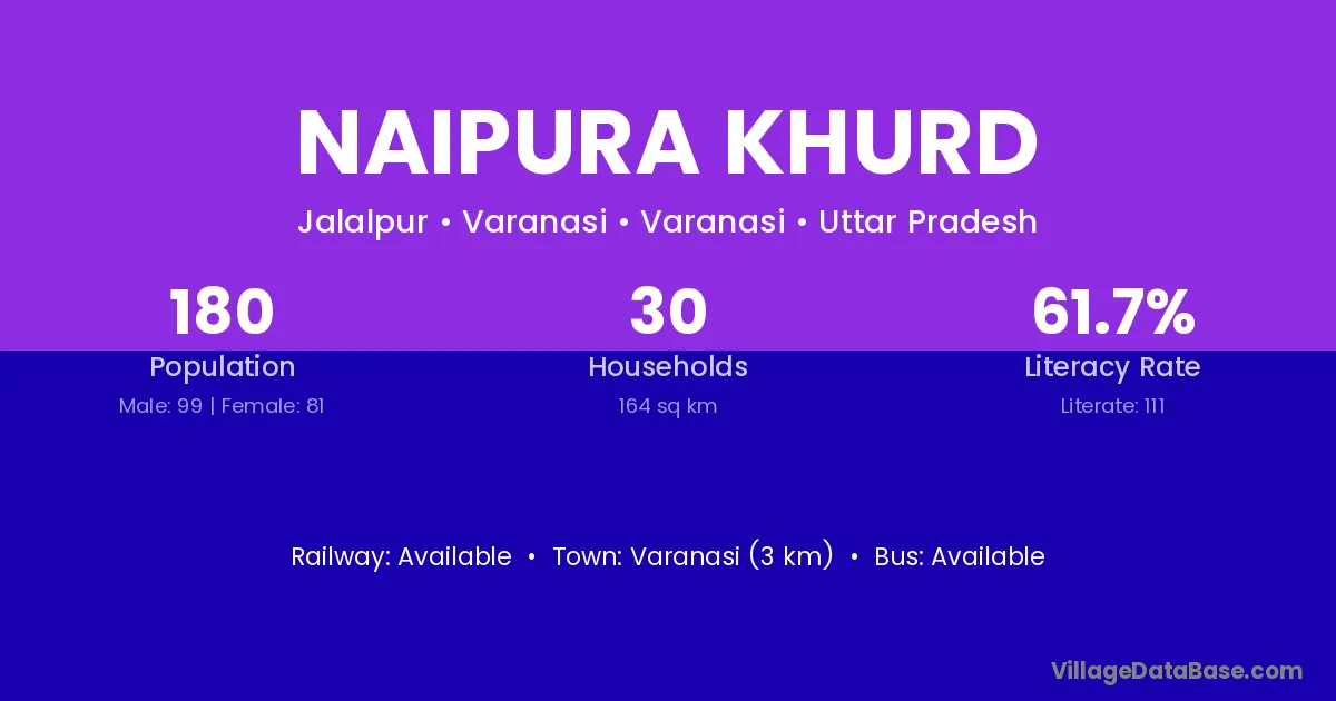 Chachaura-binaganj (13 km) is the nearest town to Naipura Khurd village for major economic activities and is located approximately 13 km away.