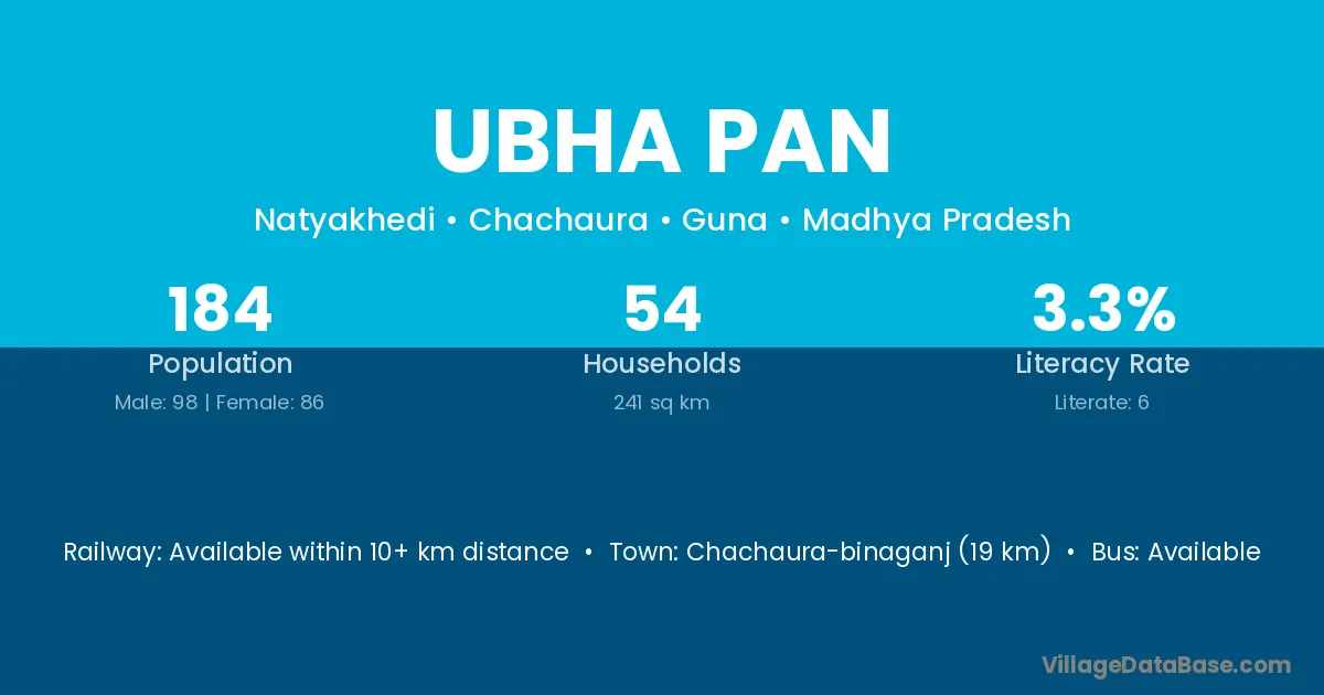 Ubha Pan village has a total population of 184 people, of which 98 are males and 86 are females.