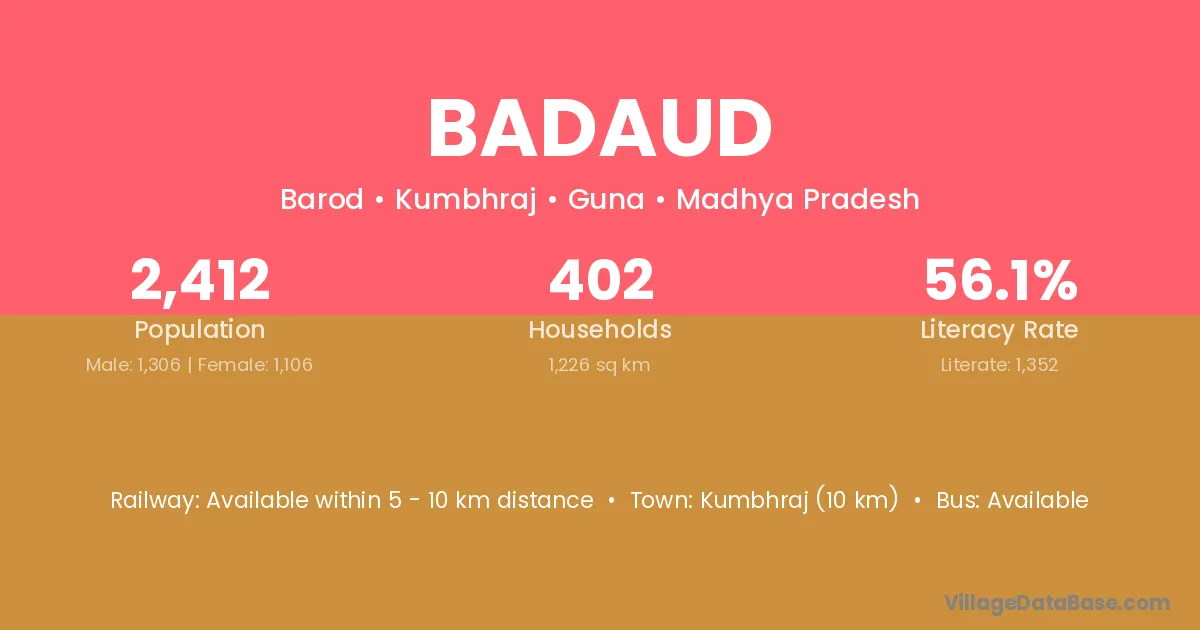 Kumbhraj (10 km) is the nearest town to Badaud village for major economic activities and is located approximately 10 km away.