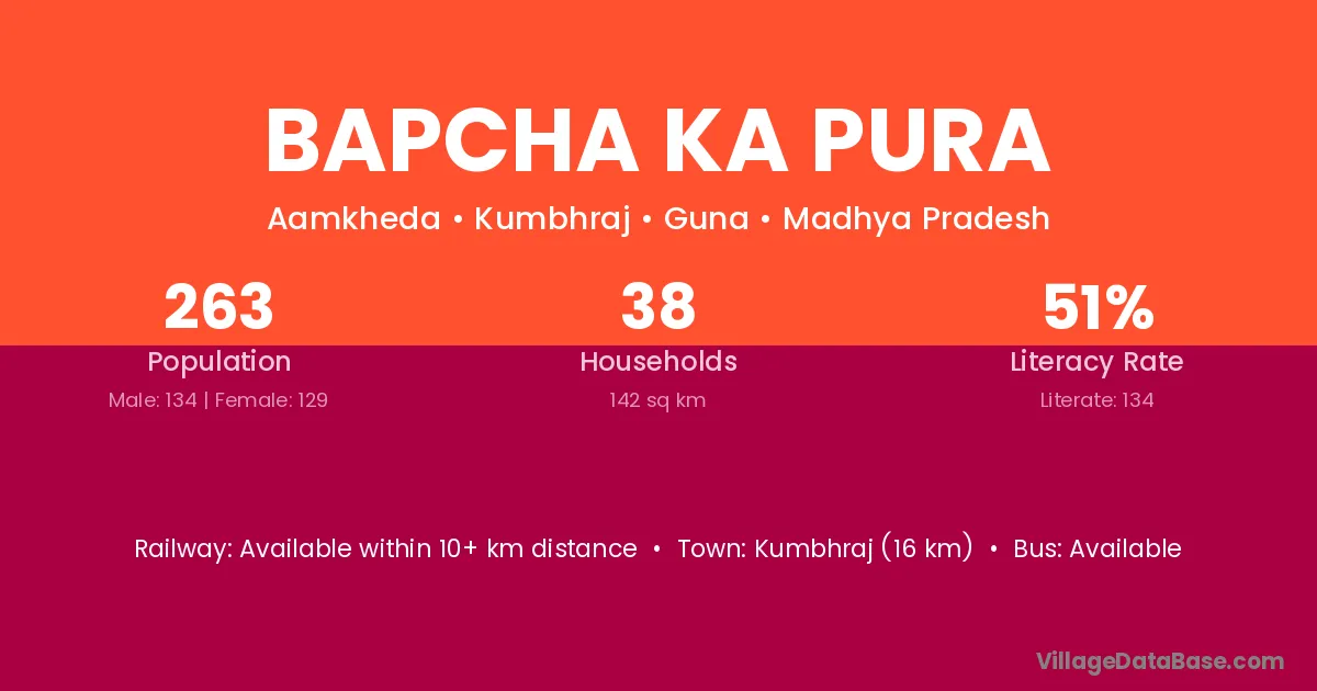 Bapcha Ka Pura village has a total population of 263 people, of which 134 are males and 129 are females.