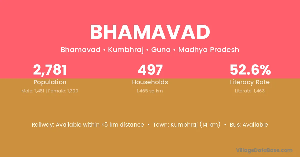 Bhamavad village has a total population of 2,781 people, of which 1,481 are males and 1,300 are females.