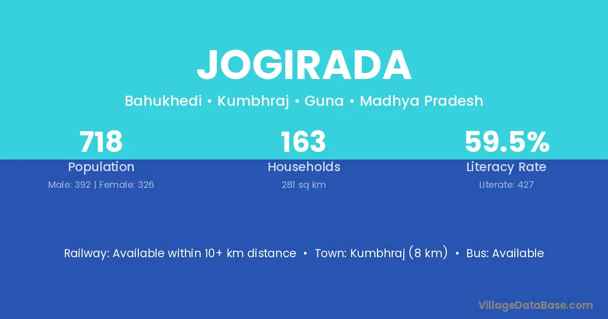 Jogirada village is located in the Kumbhraj Tehsil of the Guna district in Madhya Pradesh .