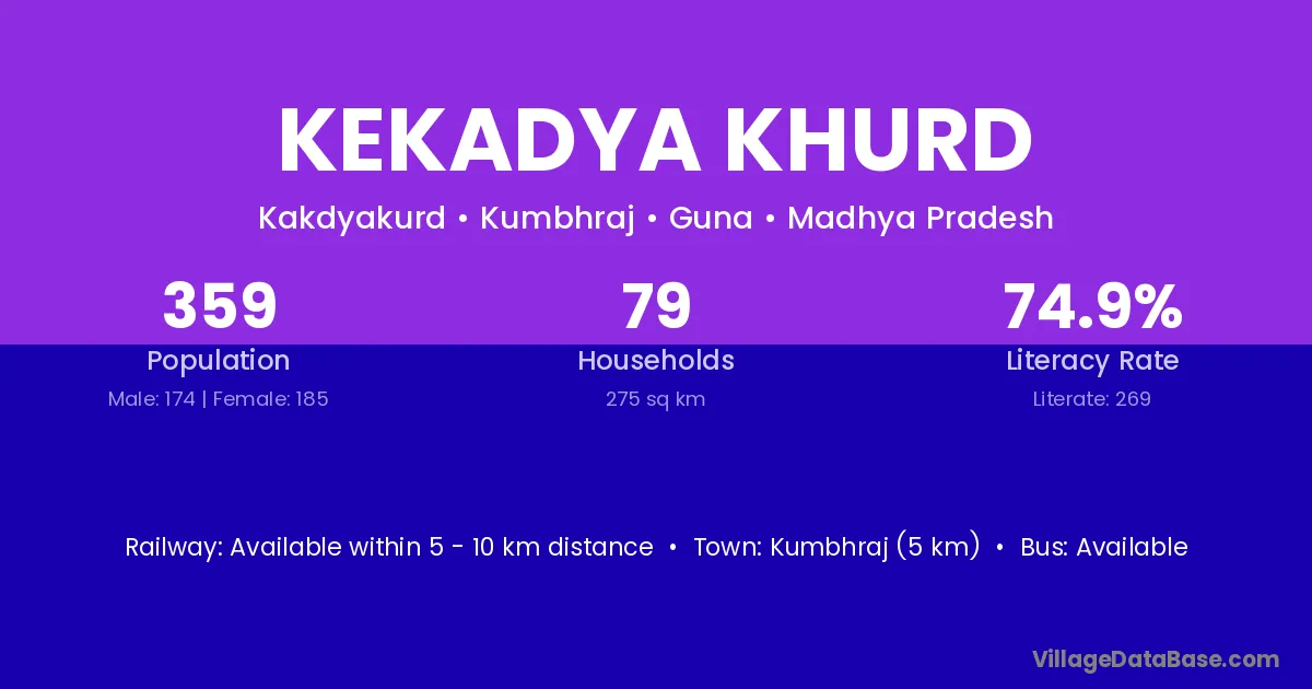 Kekadya Khurd village has a total population of 359 people, of which 174 are males and 185 are females.