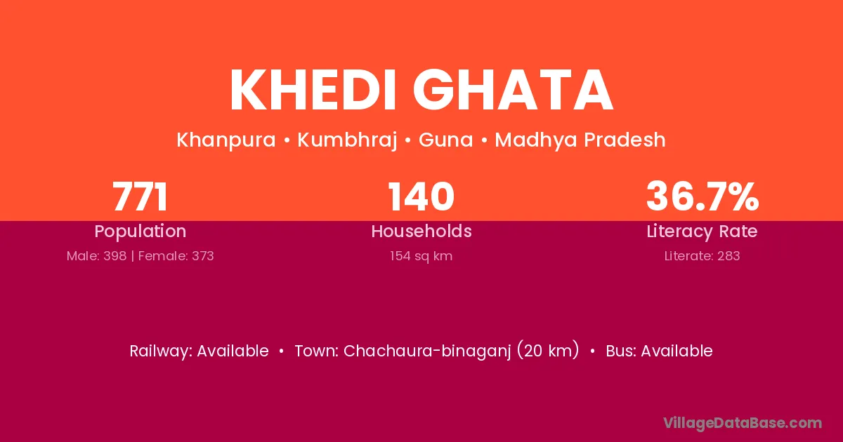 Khedi Ghata village has a total population of 771 people, of which 398 are males and 373 are females.