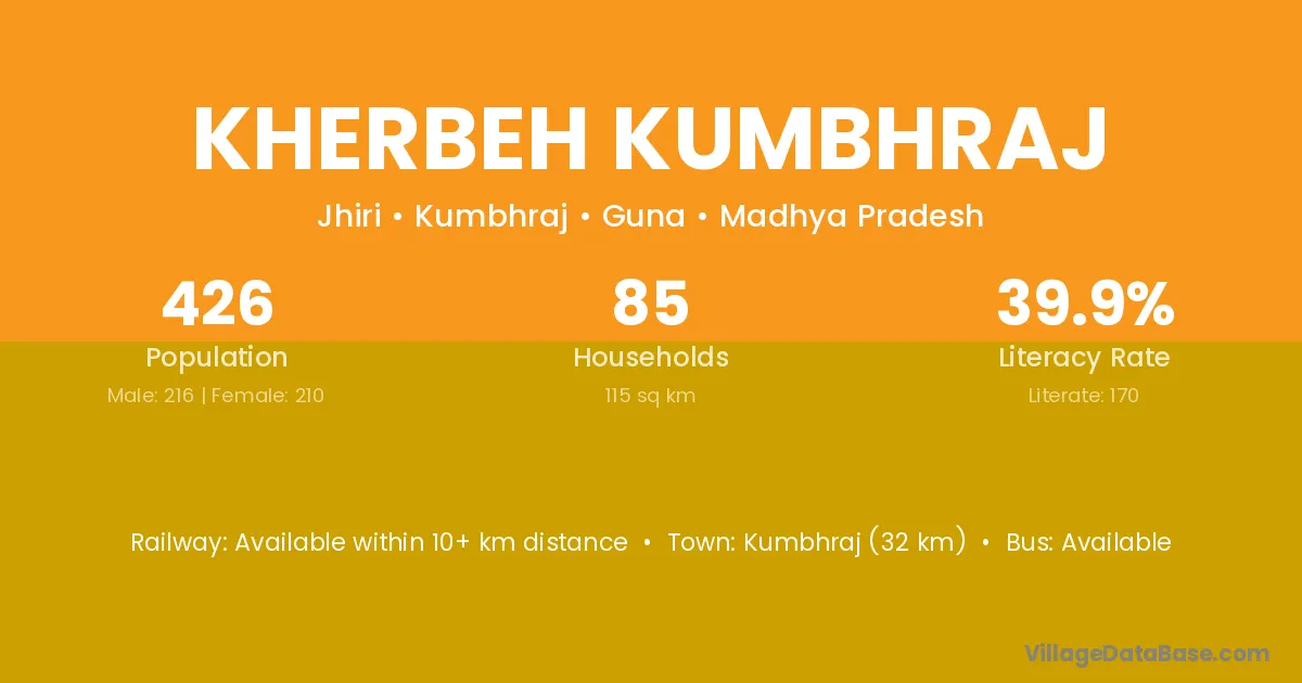Kherbeh Kumbhraj village has a total population of 426 people, of which 216 are males and 210 are females.