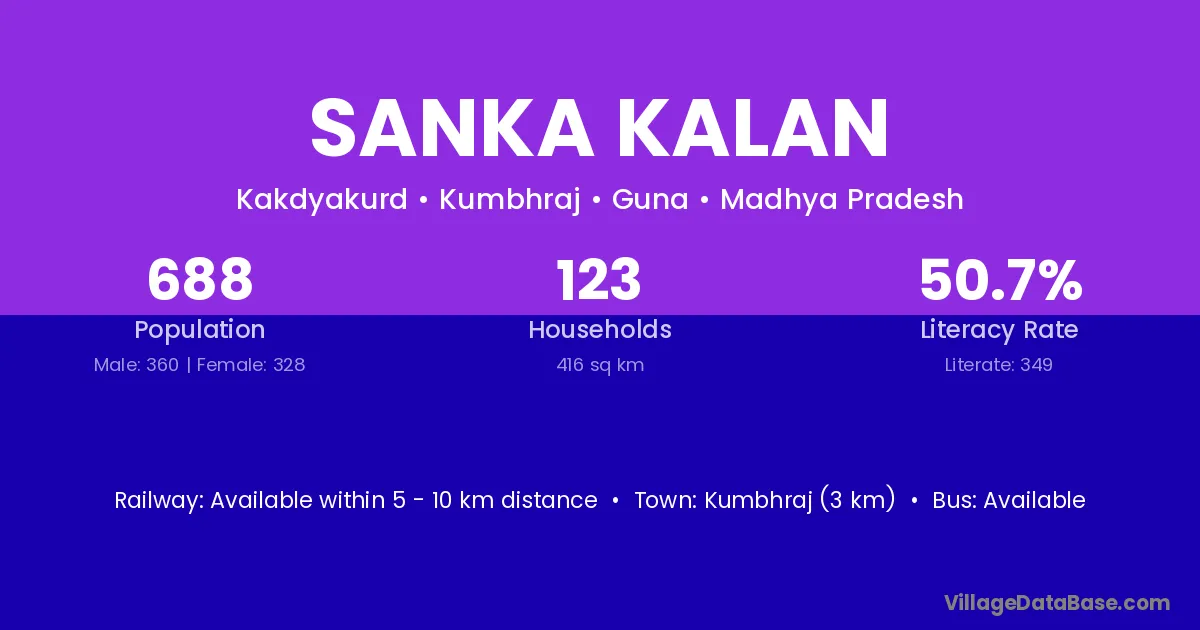Sanka Kalan village is located in the Kumbhraj Tehsil of the Guna district in Madhya Pradesh .