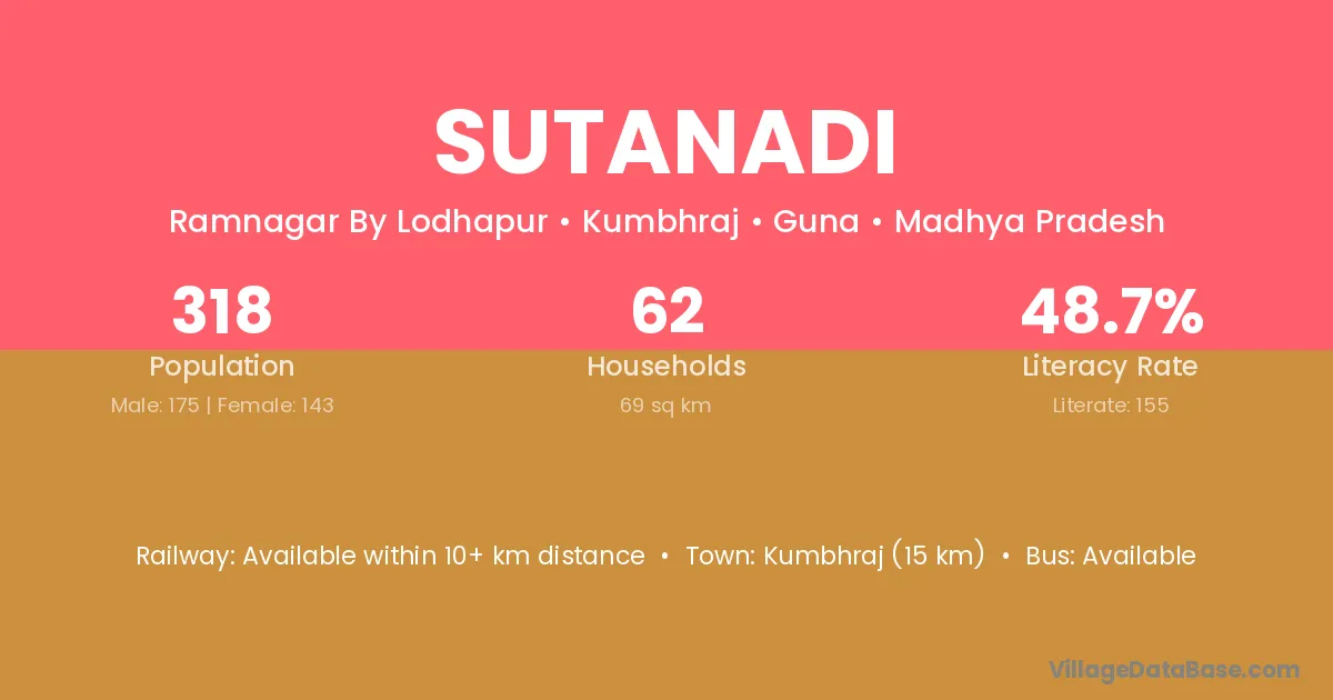 Kumbhraj (15 km) is the nearest town to Sutanadi village for major economic activities and is located approximately 15 km away.