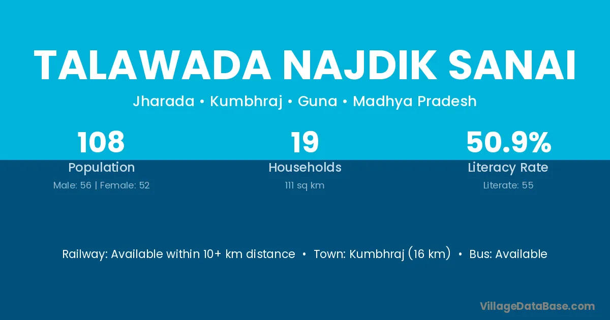 Talawada Najdik Sanai village has a total population of 108 people, of which 56 are males and 52 are females.