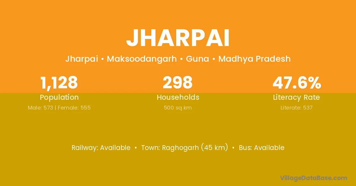 Raghogarh (45 km) is the nearest town to Jharpai village for major economic activities and is located approximately 45 km away.