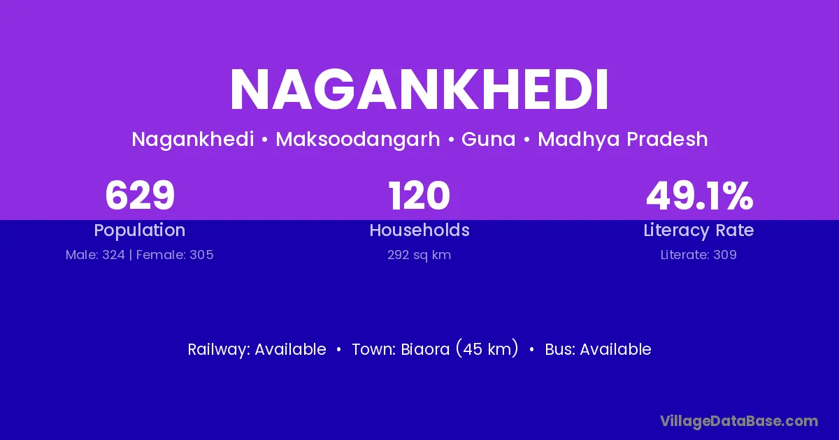 Biaora (45 km) is the nearest town to Nagankhedi village for major economic activities and is located approximately 45 km away.