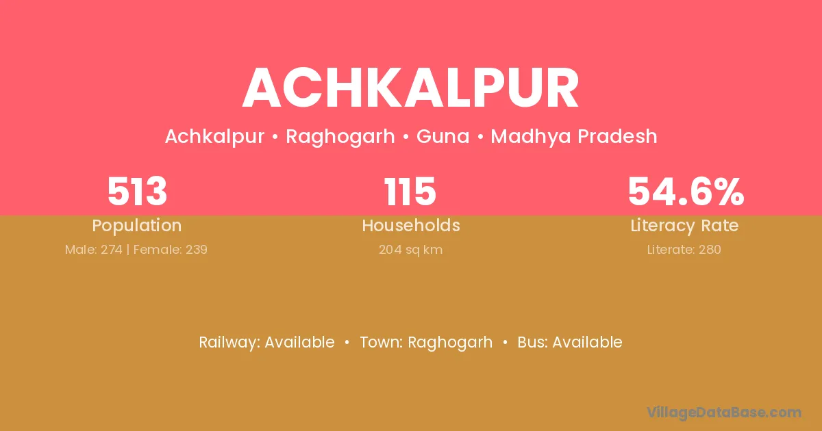 Raghogarh is the nearest town to Achkalpur village for major economic activities