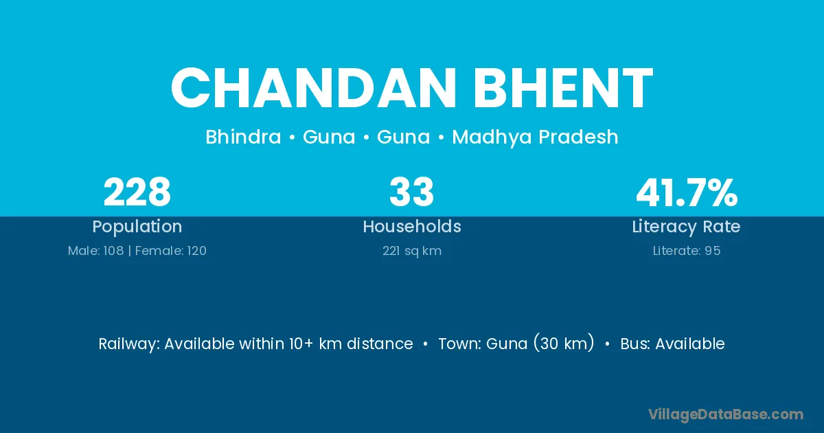 Raghogarh (4 km) is the nearest town to Chandan Bhent village for major economic activities and is located approximately 4 km away.