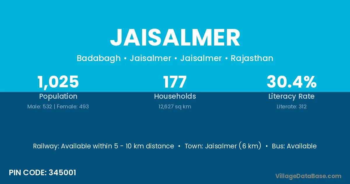 Raghogarh (18 km) is the nearest town to Jaisalmer village for major economic activities and is located approximately 18 km away.