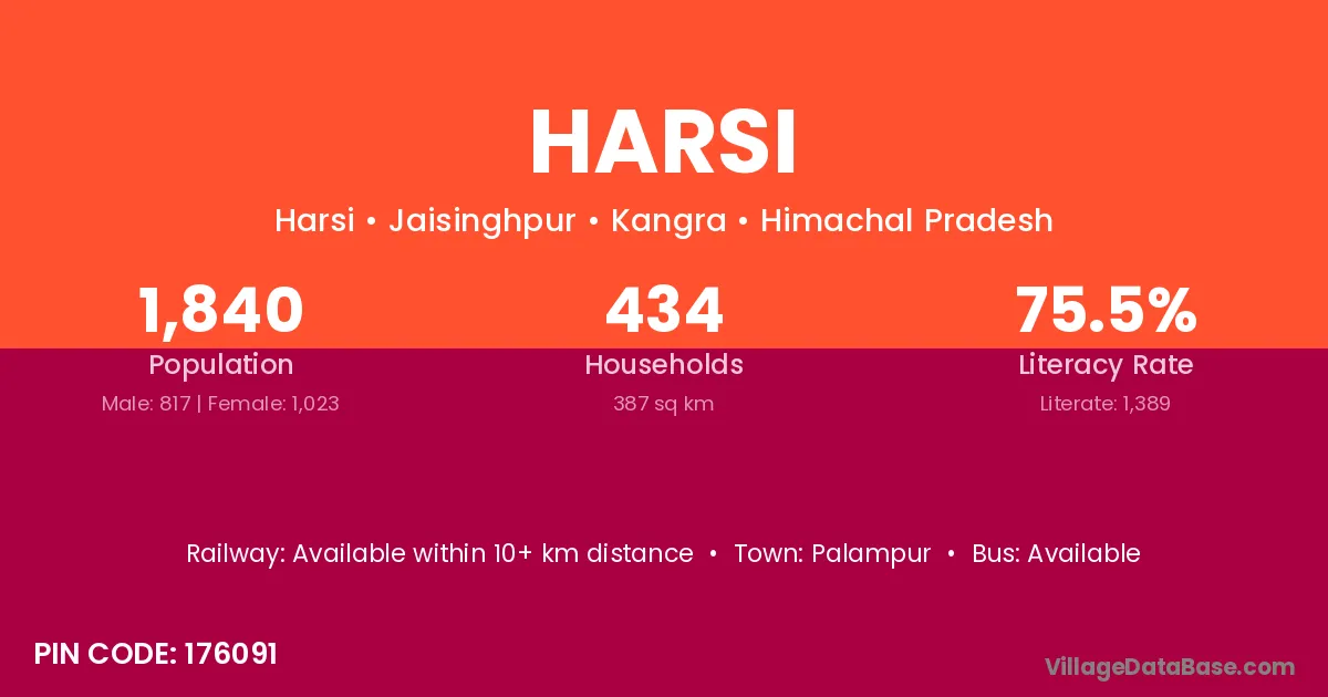 Harsi village has a total population of 2,253 people, of which 1,158 are males and 1,095 are females.