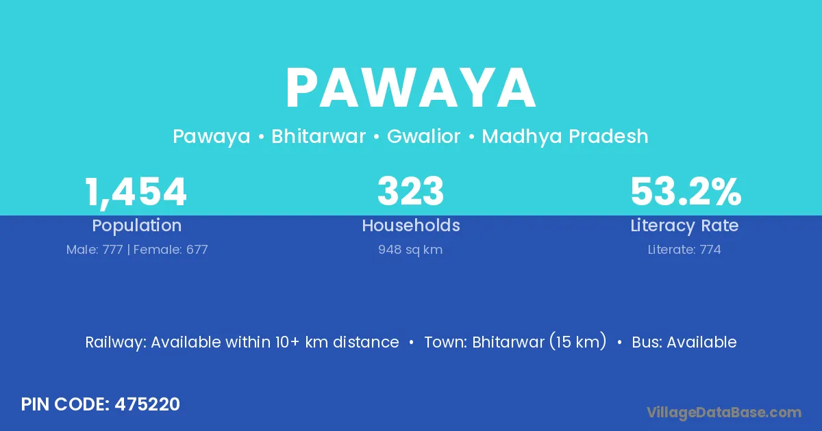 Bhitarwar (15 km) is the nearest town to Pawaya village for major economic activities and is located approximately 15 km away.