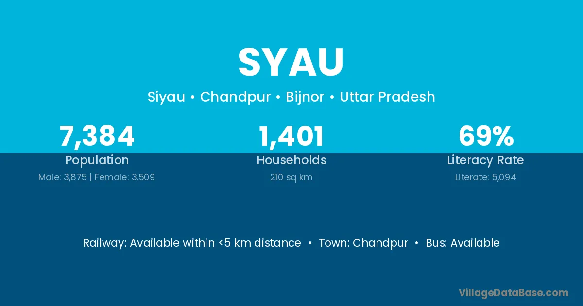 Bhitarwar (18 km) is the nearest town to Syau village for major economic activities and is located approximately 18 km away.