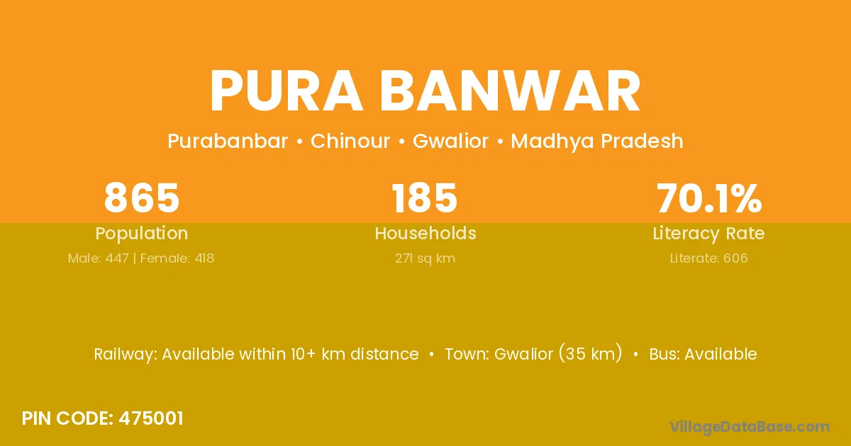 Gwalior (35 km) is the nearest town to Pura Banwar village for major economic activities and is located approximately 35 km away.