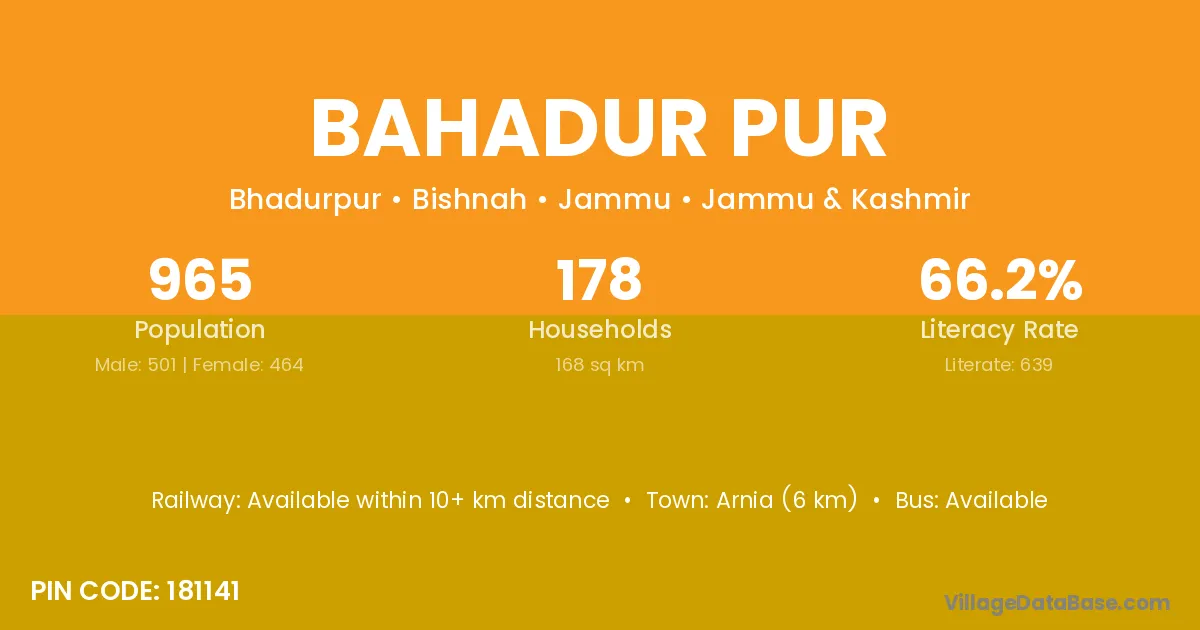 Dabra (35 km) is the nearest town to Bahadur Pur village for major economic activities and is located approximately 35 km away.
