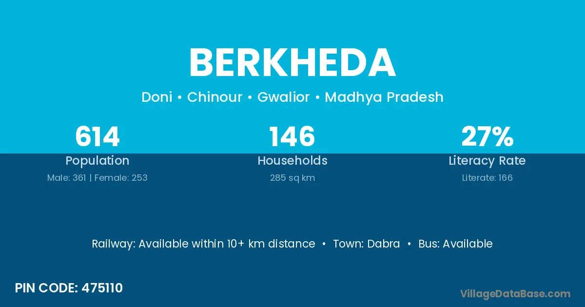 Pichhore (3 km) is the nearest town to Berkheda village for major economic activities and is located approximately 3 km away.