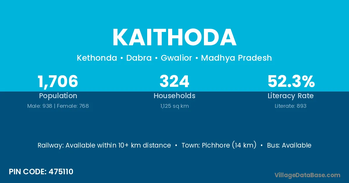 Pichhore (14 km) is the nearest town to Kaithoda village for major economic activities and is located approximately 14 km away.