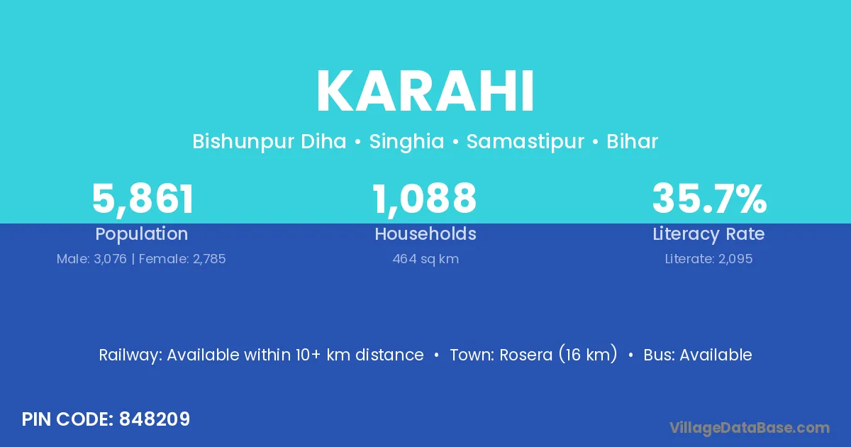 Pichhore (5 km) is the nearest town to Karahi village for major economic activities and is located approximately 5 km away.