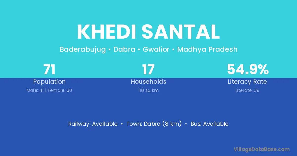 Dabra (8 km) is the nearest town to Khedi Santal village for major economic activities and is located approximately 8 km away.
