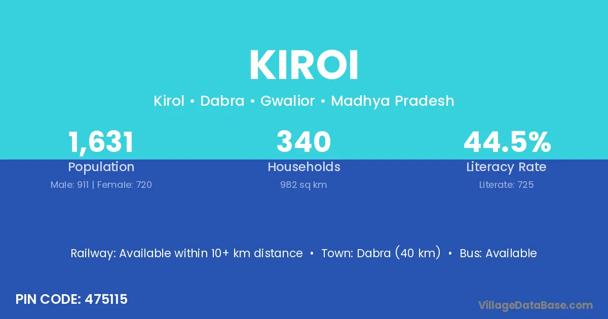 According to Census 2011 information, the village code of Kiroi village is 475115.