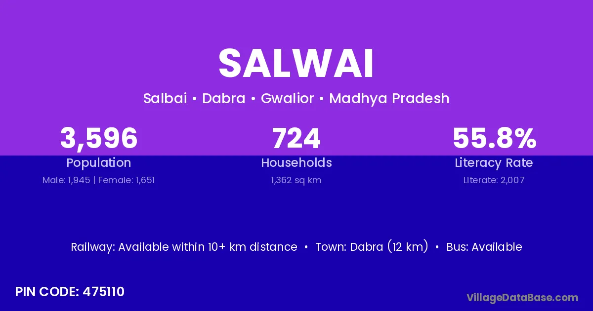 Dabra (12 km) is the nearest town to Salwai village for major economic activities and is located approximately 12 km away.